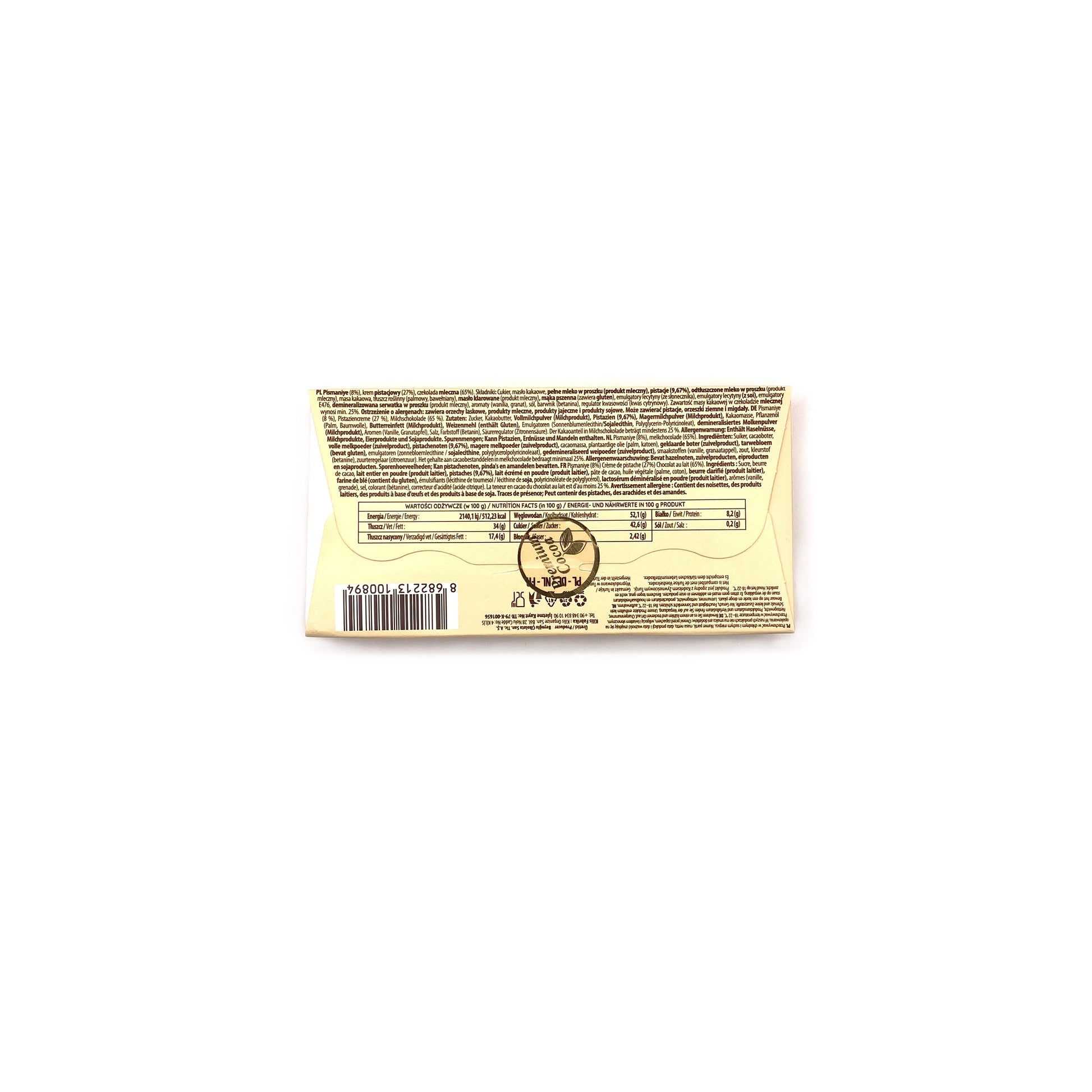 Enthält Milch, Pistazien und Soja.